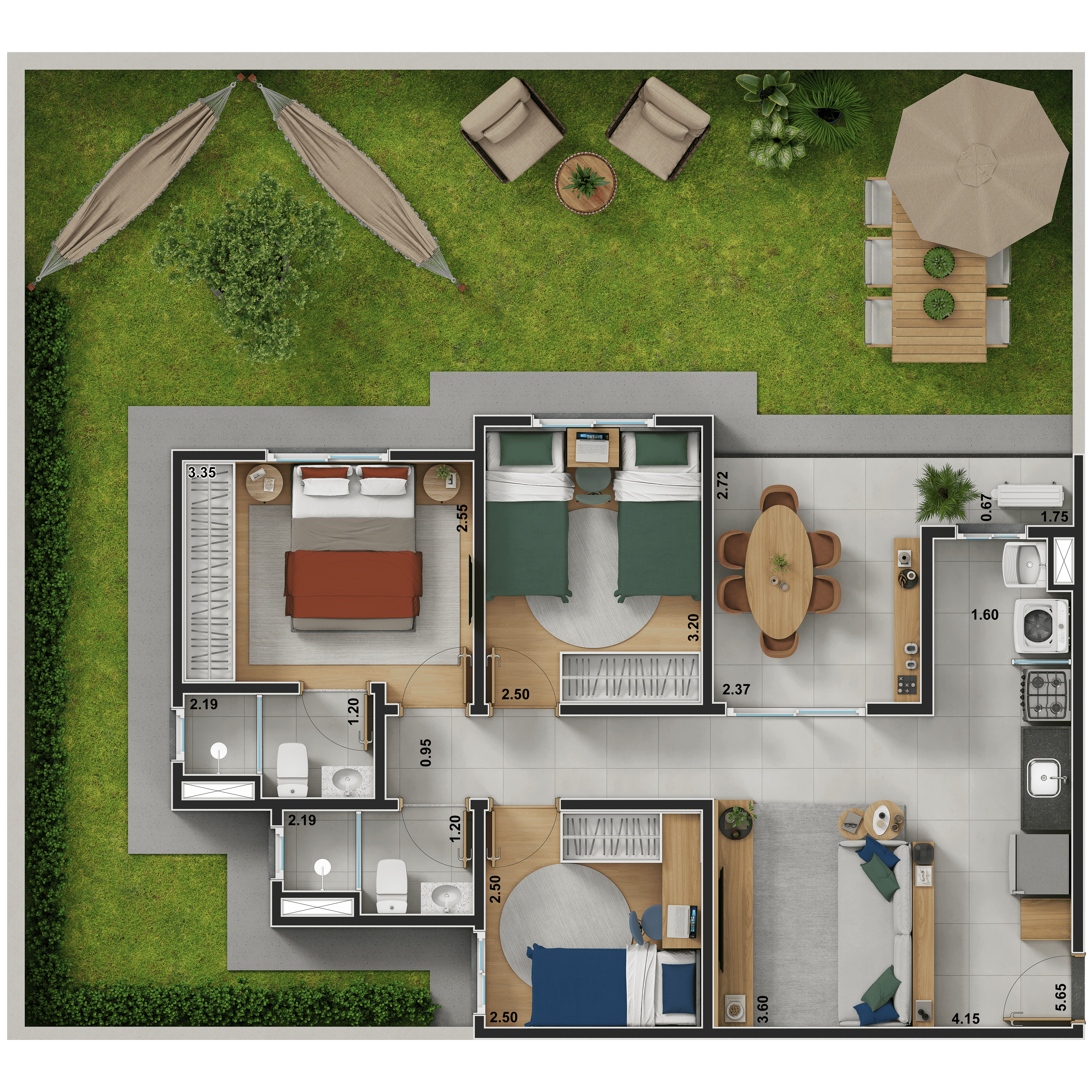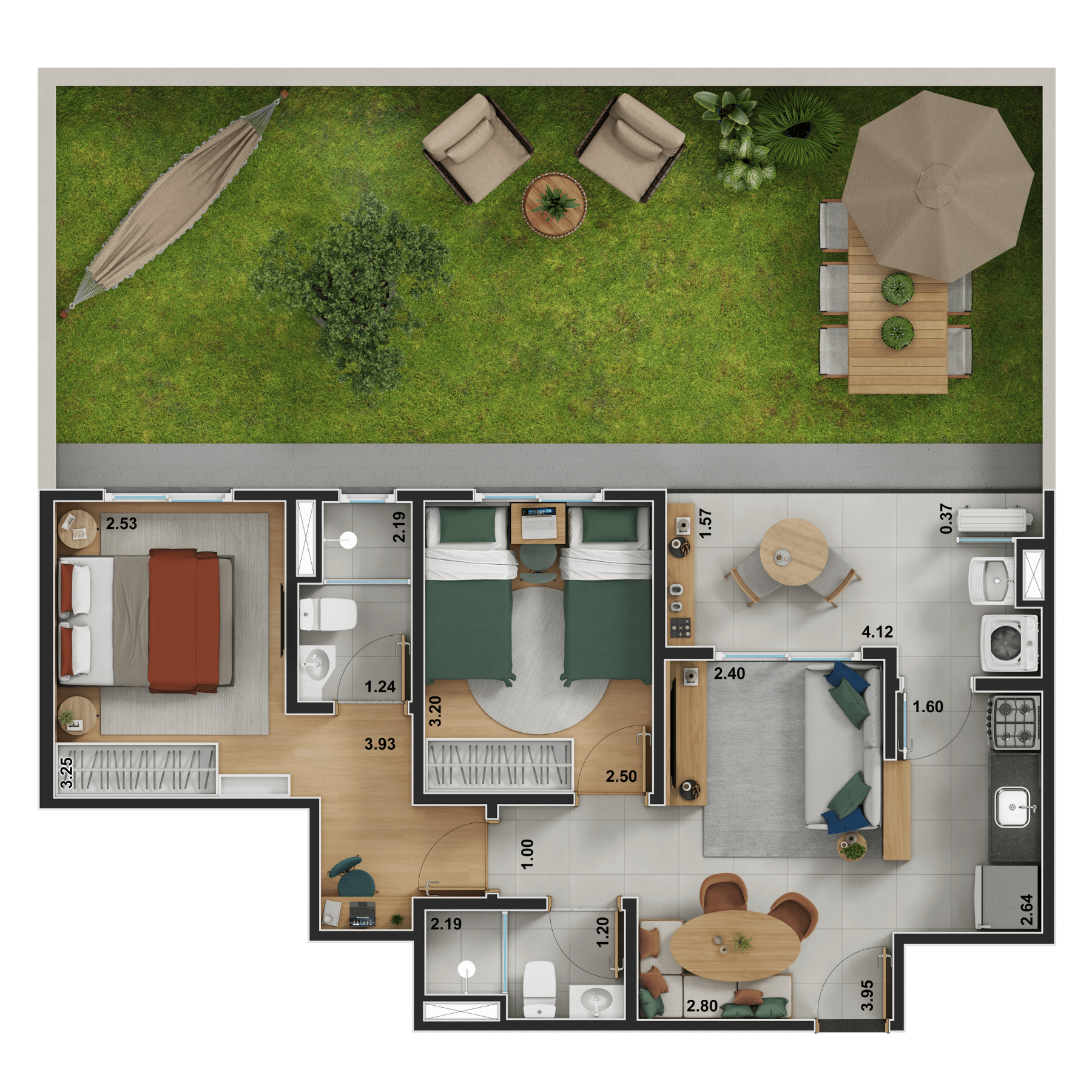 Unidades térreas com jardim privativoUnidades térreas com jardim privativo